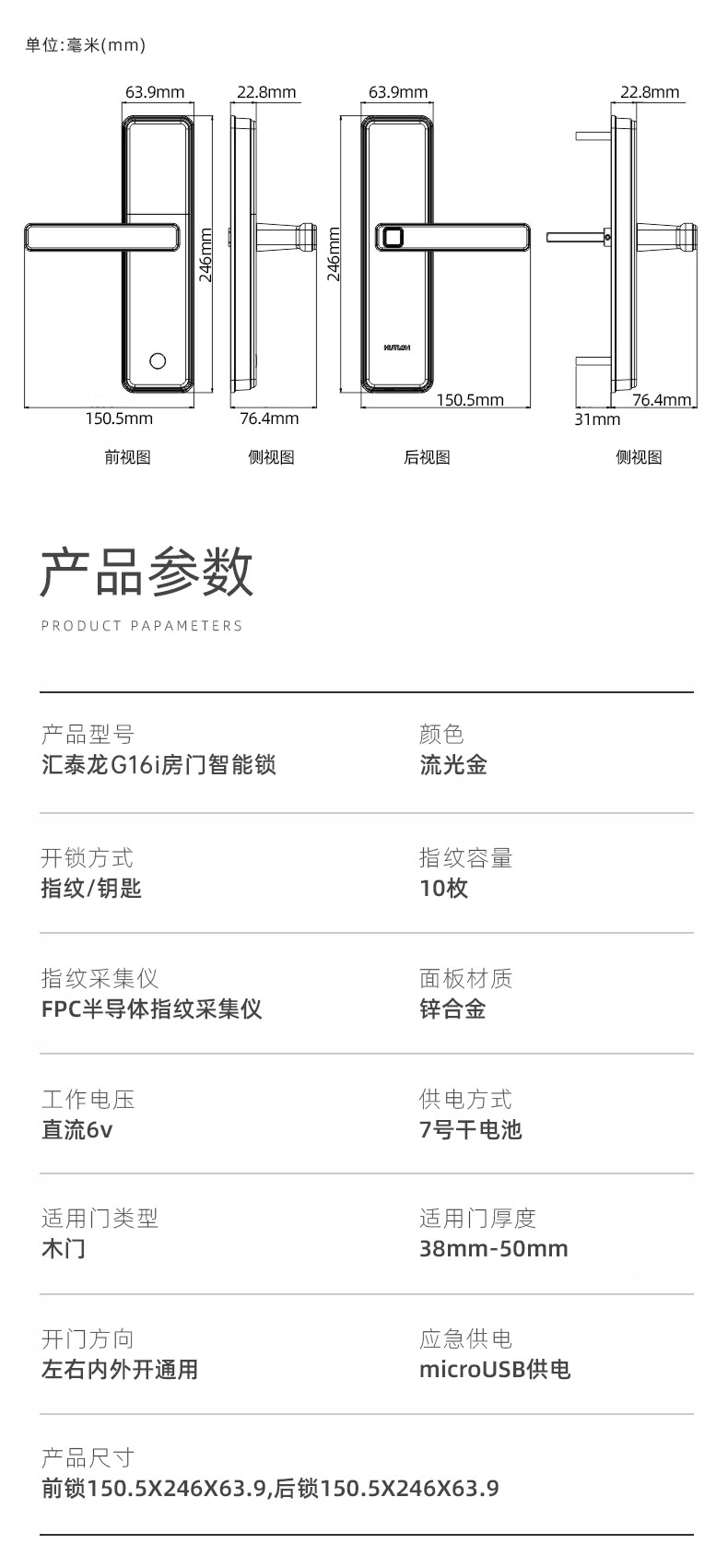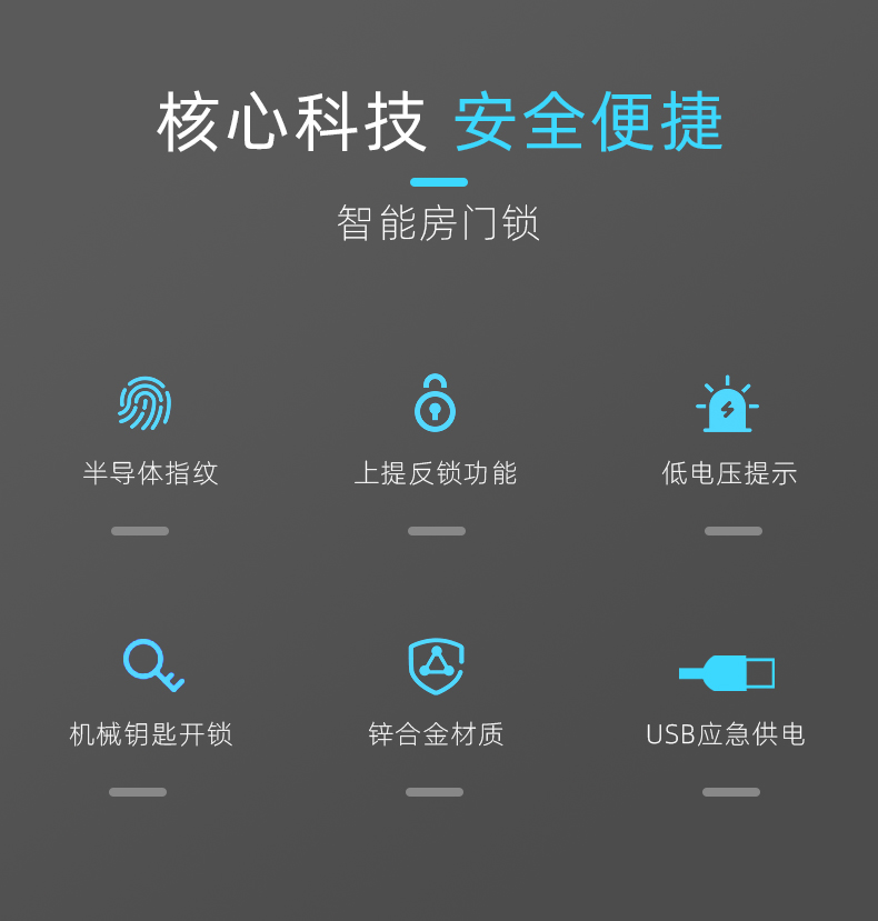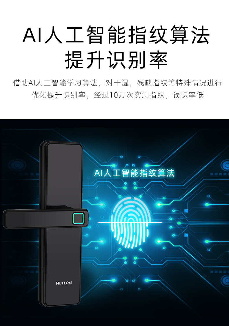 1. 把手指紋設(shè)計,采用瑞典FPC生物識別傳感器,一體化帶燈光提示指紋讀頭設(shè)計,極速識別開鎖快人一步;