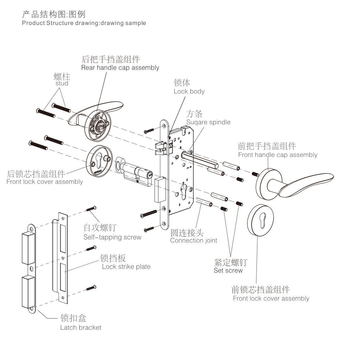4安裝內(nèi)外面板,使把手轉(zhuǎn)動(dòng)順:擰緊螺釘(如上圖:E-F)。
