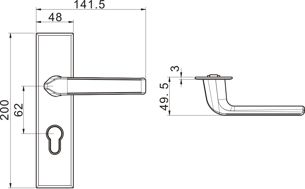 3將方桿穿過(guò)門(mén)板插入鎖體(如下圖:D)。