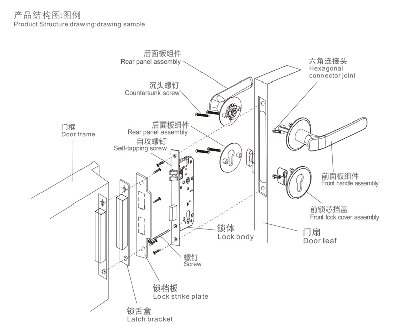 6擰緊螺釘,安裝扣板及扣盒,對(duì)齊鎖體,應(yīng)使鎖舌與之配合順暢,擰緊螺釘(如上圖:H)。