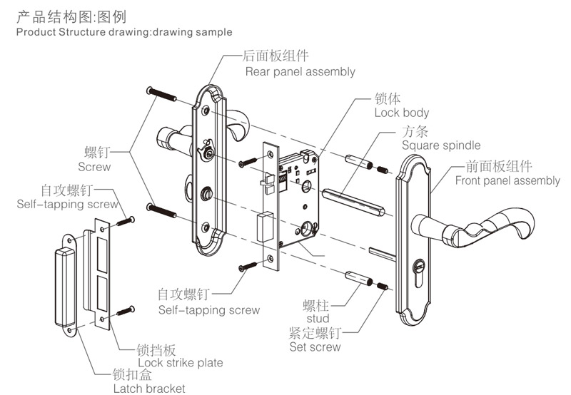 6擰緊螺釘,安裝扣板及扣盒,對齊鎖體,應(yīng)使鎖舌與之配合順暢,擰緊螺釘(如上圖:H)。