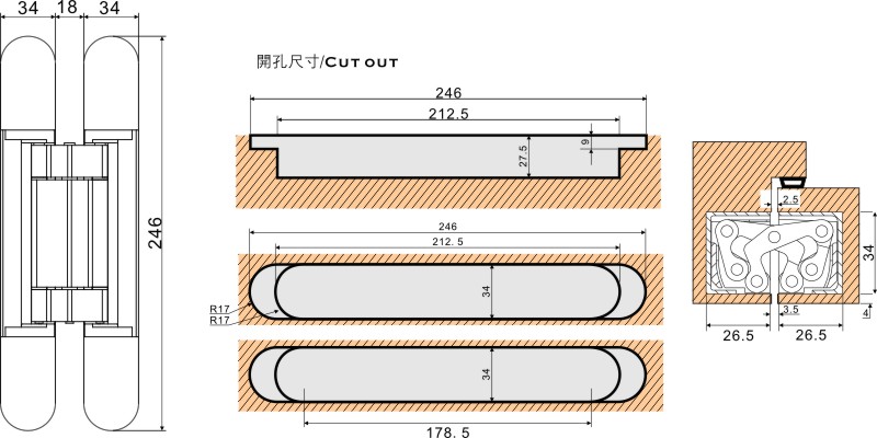 HA-81623-120 三維可調(diào)暗鉸鏈